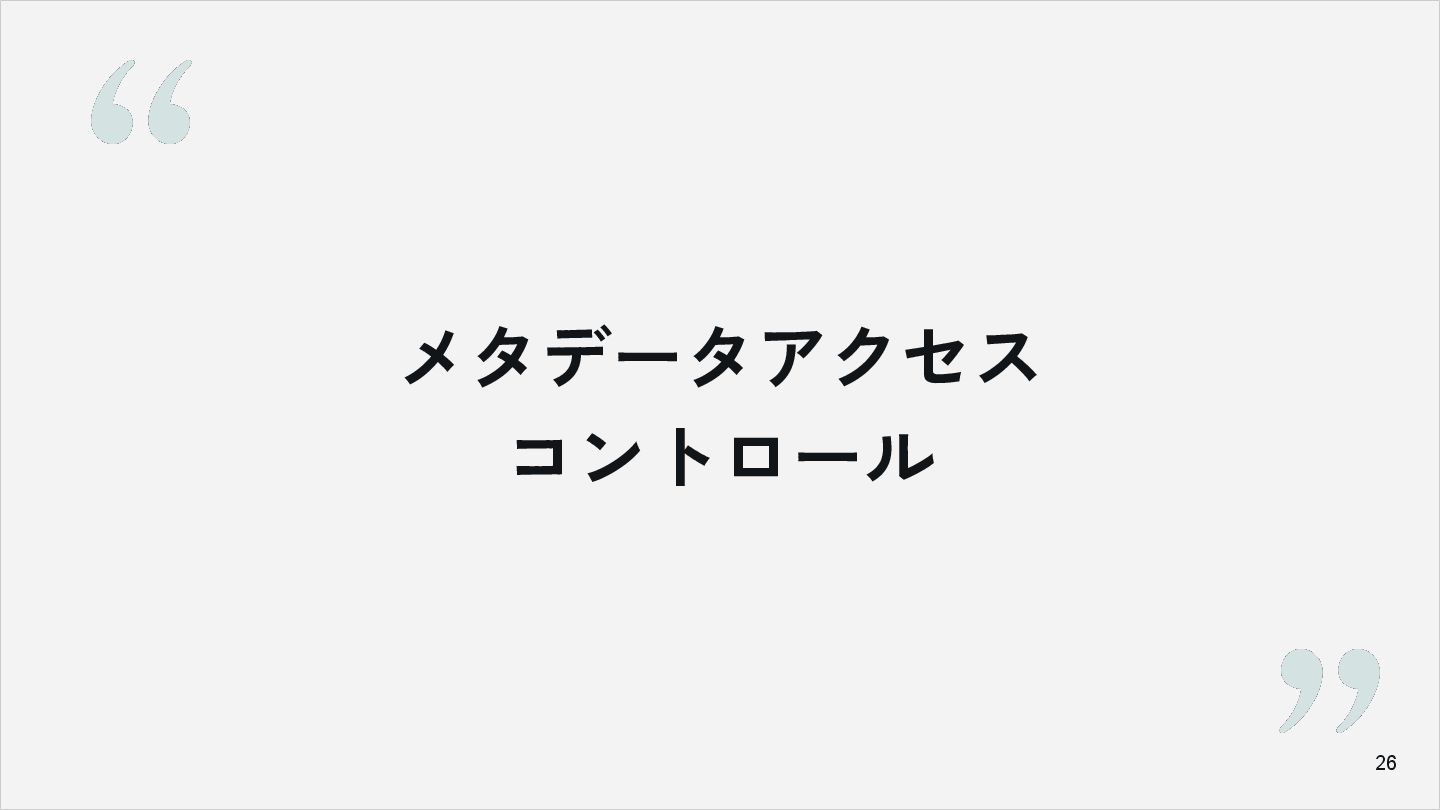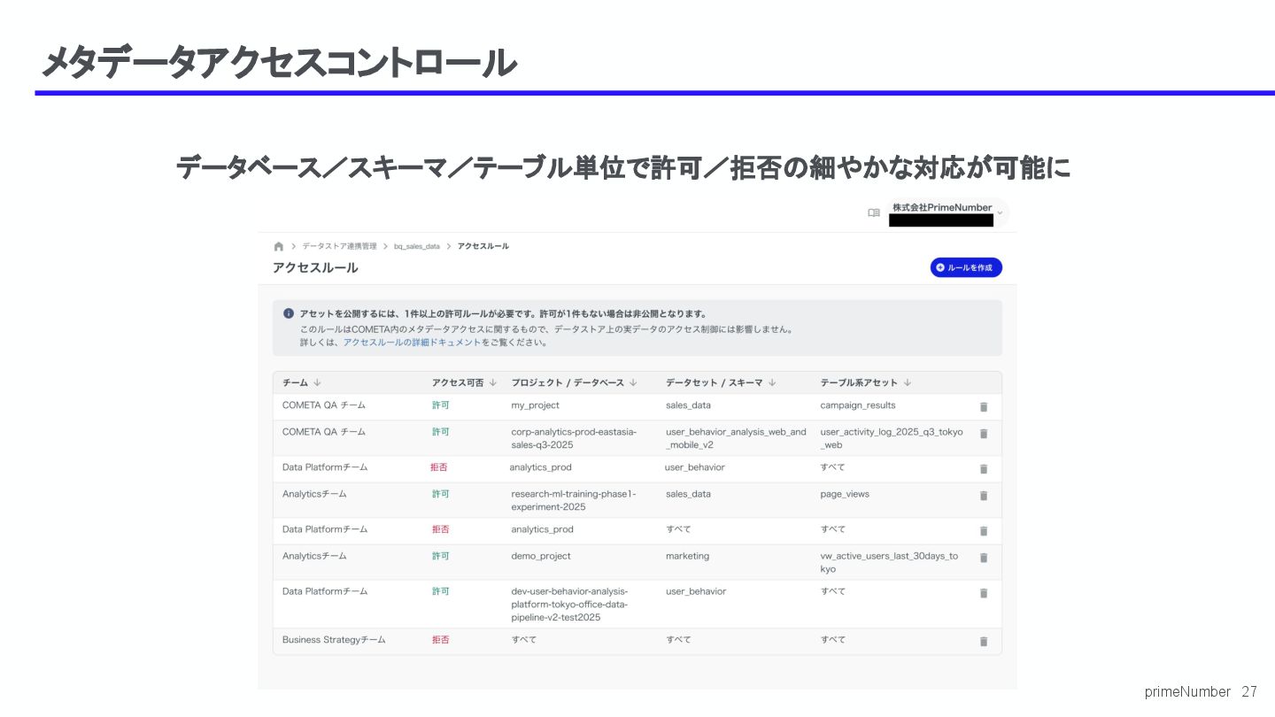 primeNumber メタデータアクセスコントロール データベース/スキーマ/テーブル単位で許可/拒否の細やかな対応が可能に 27