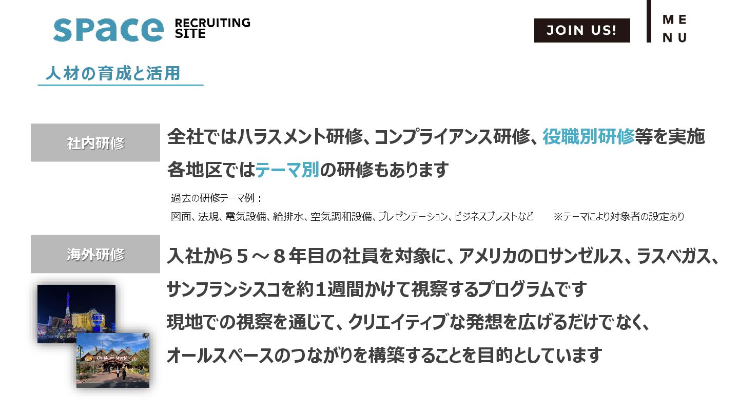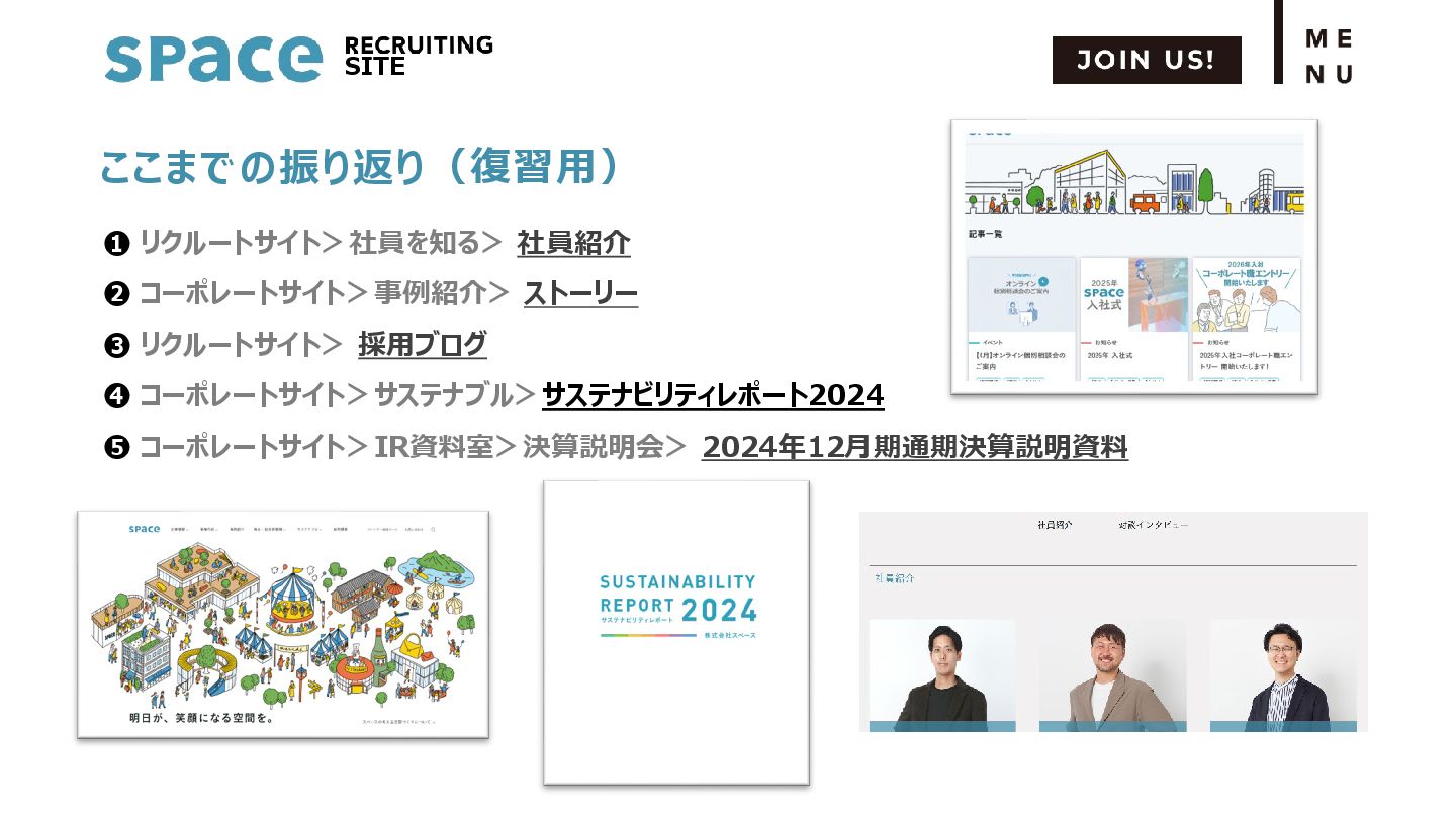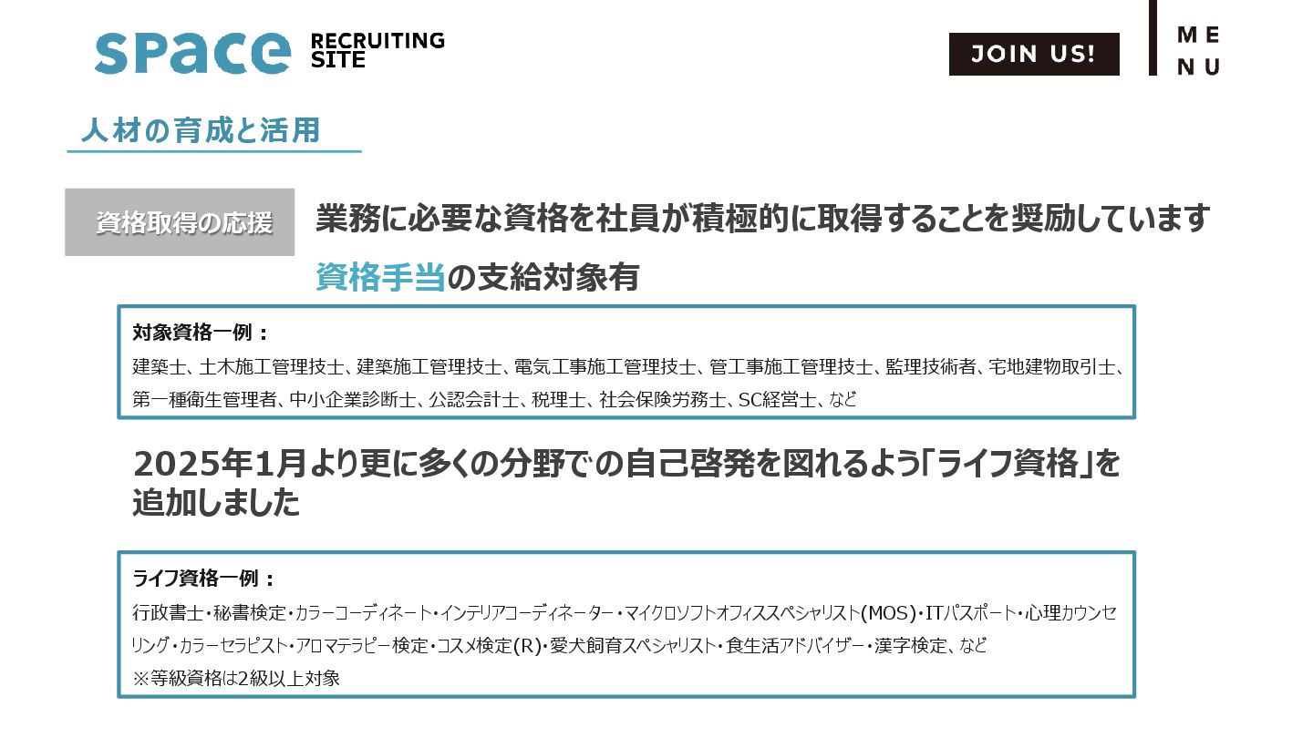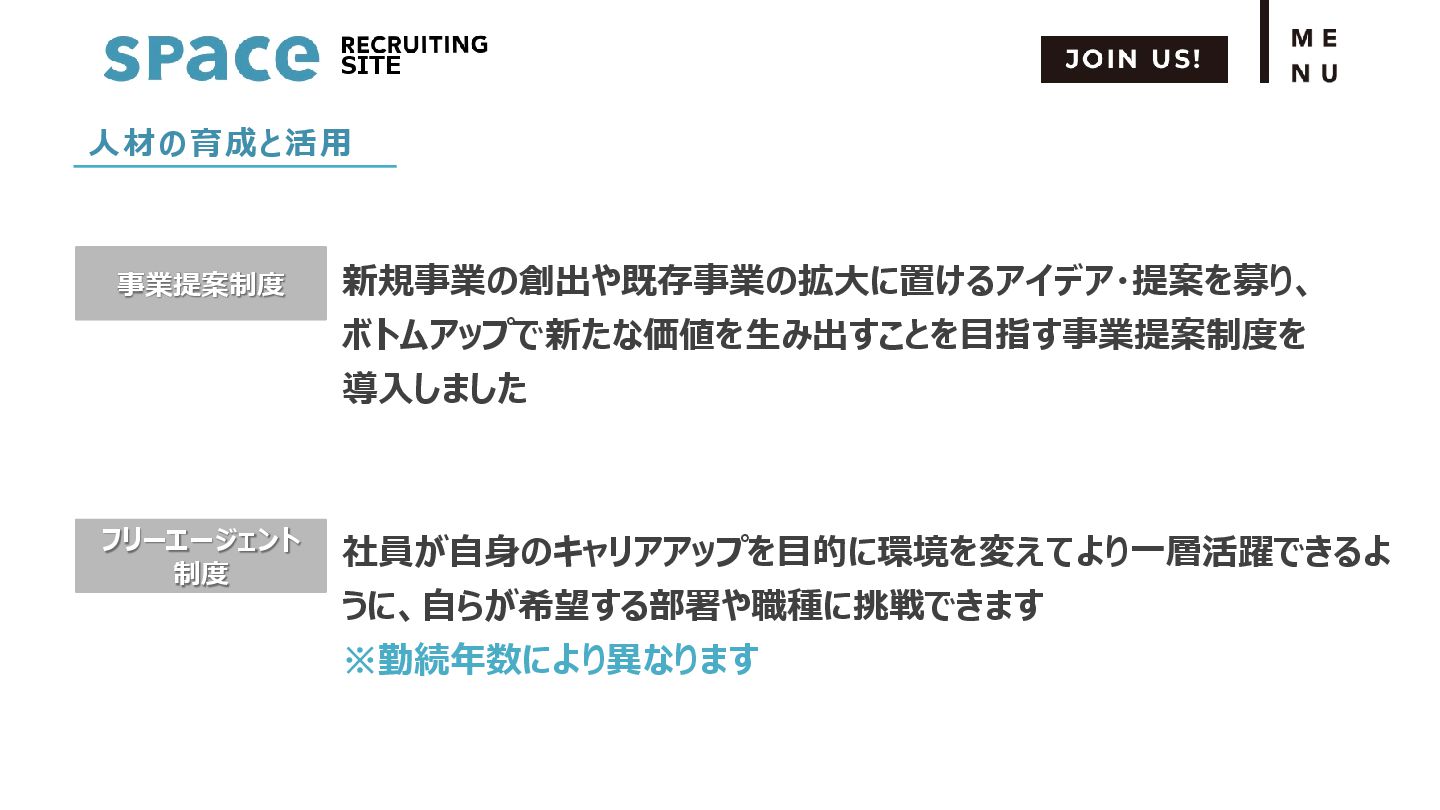 資本金 33億9553万円 従業員 拠 点 東京 , 名古屋 , 大阪 , 福岡 , 犬山 , 札幌 仙台 , 横浜 , 金沢 , 静岡 , 松山 , 広島 グループ 株式会社エム・エス・シー SPACE SHANGHAI CO .,LTD.(上海) SPACE JAPAN(HK) CO.,LTD.(香港) 沖縄スペース株式会社 SPACE JAPAN(VN) CO., LTD.(ベトナム) female 33.2% male 66.8% 28.8% 20’s 東京証券取引所プライム市場 証券コード【 9622】 27.6% 30’s 40’s 21.9% 50-60’s 21.7% 886 平均年収 38 平均年齢 641 売上高 17 純利益 億 億 万 歳 ▪ 男女比率 ▪ 年代別構成比率 SITE ※2024年度実績