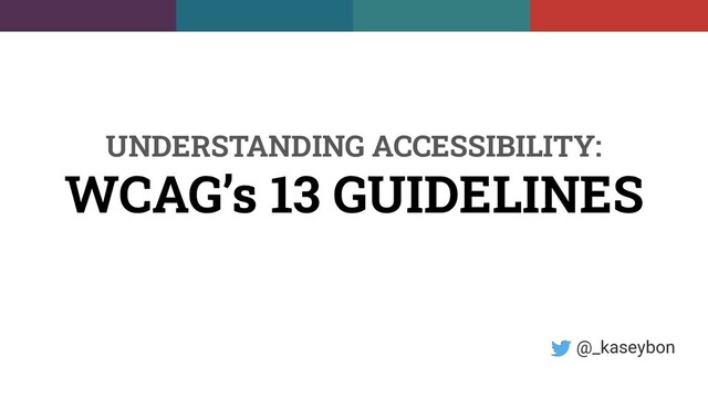 Accessibility is critical, but it can be confusing. Kasey Bonafacio will demystify the 13 WCAG guidelines and show examples of each guideline in action, empowering you to improve accessibility in your projects.
