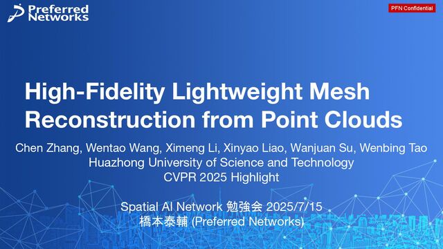 Zhang, Wentao Wang, Ximeng Li, Xinyao Liao, Wanjuan Su, Wenbing Tao Huazhong University of Science and Technology CVPR 2025 Highlight Spatial AI Network 勉強会 2025/7/15 橋本泰輔 (Preferred Networks)
