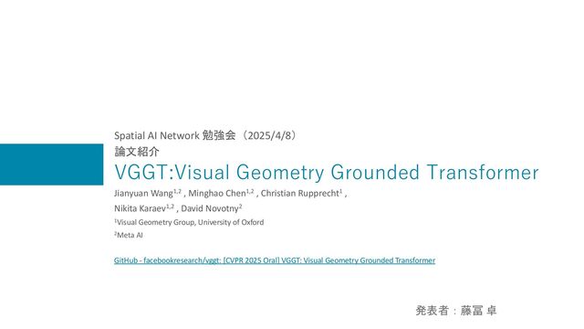 o 1回のフォワードパスで任意枚数に対する3D属性を推定 ▪ まとめて処理するため高コストな後処理を不要化 DUSt3R [2312.14132] DUSt3R: Geometric 3D Vision Made Easy MASt3R [2406.09756] Grounding Image Matching in 3D with MASt3R