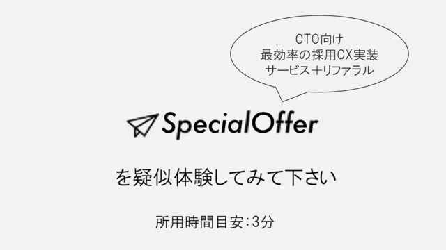 を疑似体験してみて下さい CTO向け 最効率の採用CX実装 サービス+リファラル 所用時間目安:3分