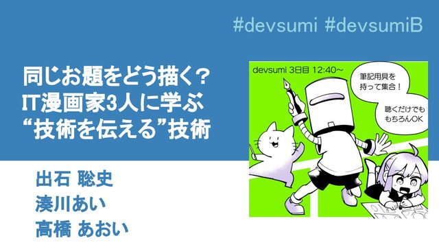 出石聡史、高橋あおい、湊川あいのIT漫画家3人と一緒に、お題に沿って解説漫画をつくってみましょう!