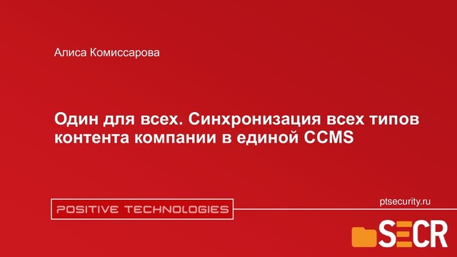 На презентации я поделюсь информацией о том, с какими проблемами мы столкнулись при внедрении CCMS в другие отделы и как их решали. Мой доклад будет полезен руководителям проектов, владельцам продуктов, техническим директорам и всем тем, кто связан с разработкой документов различных типов и форматов.