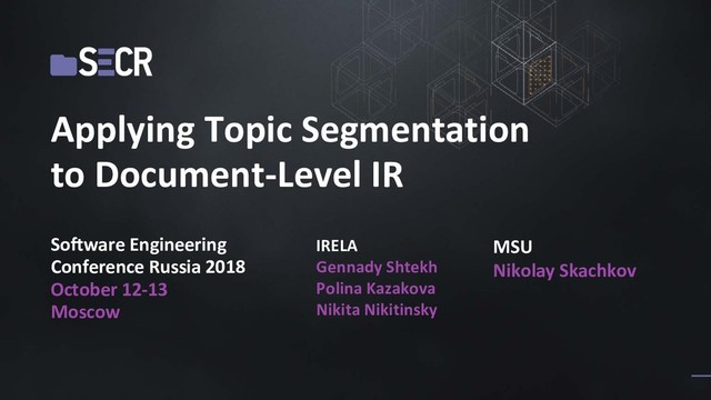 Наша работа посвящена применению текстовой сегментации в сфере информационного поиска. Мы исходим из предположения, что тематическая сегментация позволяет лучше моделировать структуру текста и, как следствие, язык сам по себе, что влияет на качество представления текста в векторном виде. Мы протестировали нашу гипотезу на датасете статей из arXiv и показали, что сегментация действительно в большинстве случаев улучшает качество поиска.