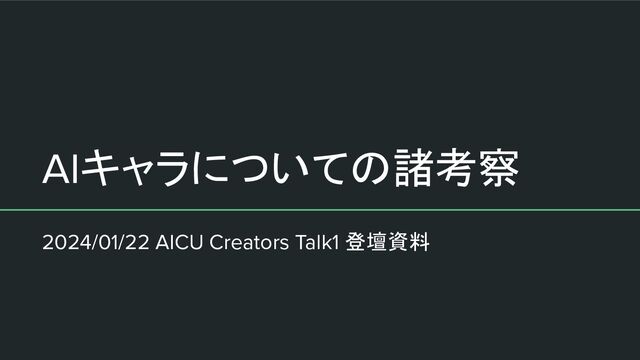 AIキャラについての諸考察 2024/01/22 AICU Creators Talk1 登壇資料
