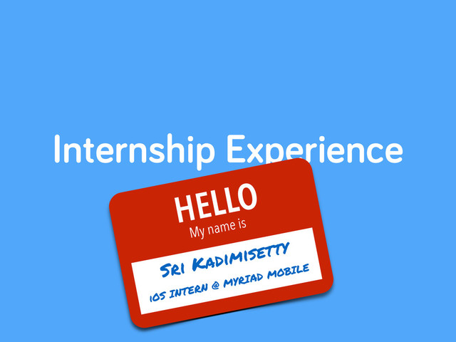 Internship Experience HELLO My name is Sri Kadimisetty iOS INTERN