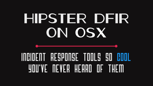 by the security team at Yelp based on OSXAuditor - Copies key system state and log files for off host analysis - Built in filters for quickly identifying common patterns