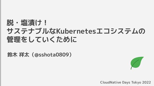 脱・塩漬け! サステナブルなKubernetesエコシステムの 管理をしていくために 鈴木 祥太(@sshota0809) CloudNative Days Tokyo 2022