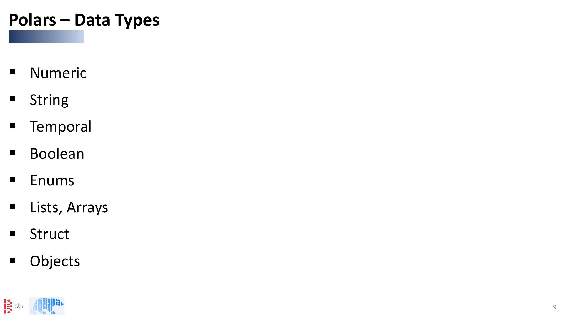 analytics ▪ Default Polars installation support up to 4.3 billion rows in a DataFrame ▪ When installed with polars-u64-idx, it can support maximum of ~18 quintillion rows Polars – DataFrame import polars as pl import datetime as dt df = pl.DataFrame({ "name": ["Alice Archer", "Ben Brown"], "birthdate": [ dt.date(1997, 1, 10), dt.date(1985, 2, 15)], "weight": [57.9, 72.5], "height": [1.56, 1.77], }) print(df)