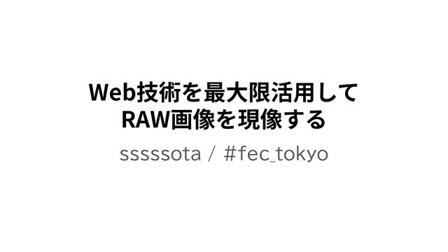 Web技術を最⼤限活⽤して RAW画像を現像する sssssota / #fec_tokyo