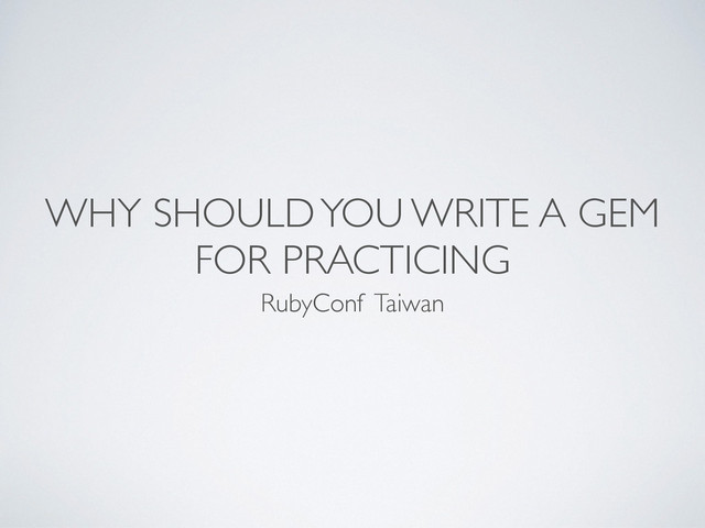 WHY SHOULD YOU WRITE A GEM FOR PRACTICING RubyConf Taiwan