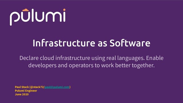 General purpose languages allow infrastructure code to have integrated testing, compile time checks as well as being able to create infrastructure APIs and is more suited to infrastructure management than DSLs, JSON or YAML. In addition, he will demonstrate how to build infrastructure that manages Serverless, Kubernetes, PaaS and IaaS systems across multiple cloud providers.