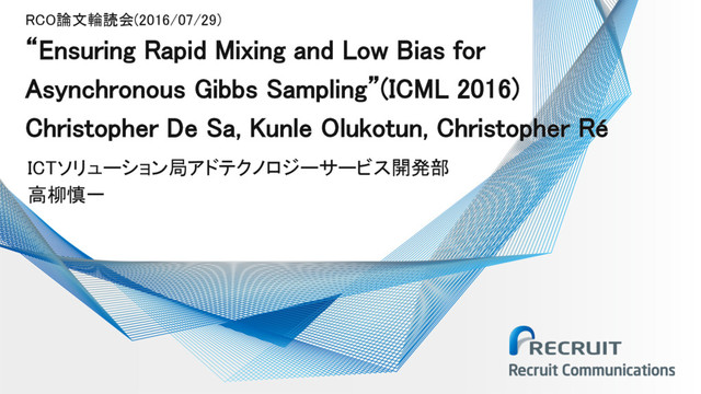 ICML 2016 best paper by Christopher De Sa, Kunle Olukotun, Christopher Ré