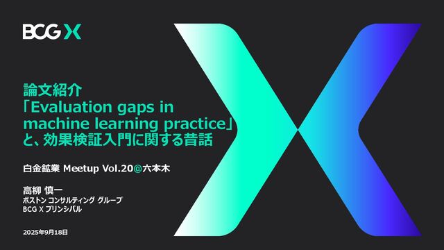 1. 論⽂紹介 「Evaluation gaps in machine learning practice」 と、効果検証⼊⾨に関する昔話 2025年9⽉18⽇ ⽩⾦鉱業