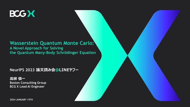 (注)本資料・議論内容は、私的な有志の勉強会を目的としたものであり、会 社としての発表ではございません (注) 以下は、下記論文からの引用です Neklyudov, Kirill, et al. "Wasserstein Quantum Monte Carlo: A Novel Approach for Solving the Quantum Many-Body Schrödinger Equation." Thirty-seventh Conference on Neural Information Processing Systems. 2023.