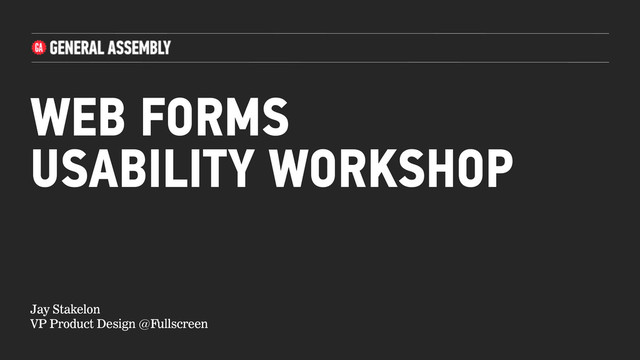 FORM! TIME 20 minutes RESOURCES http://patterntap.com http://www.wufoo.com/gallery http://www.formstack.com/examples GOAL Start with one of your example forms or find an form that needs improvement from anywhere on the internet or from Patterntap, Wufoo’s gallery or Formstack’s examples. With your partner, use what you’ve learned and redesign it in a whiteboard session!