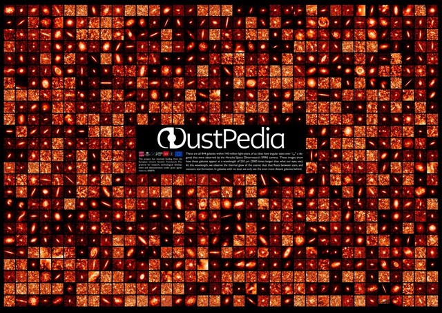 Framework Pro- gramme for research, technological develop- ment and demonstration under grant agree- ment no. 606874. These are all 844 galaxies within 140 million light-years of us (that have angular sizes over 1/60 th a de- gree) that were observed by the Herschel Space Observatory’s SPIRE camera. These images show how these galaxies appear at a wavelength of 250 µm (2000 times longer than what our eyes see). At this wavelength, we observe the thermal glow of the cosmic dust that floats between stars, and cocoons star-formation. In galaxies with no dust, we only see the even more distant galaxies behind.