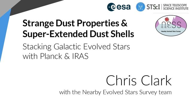 Chemistry Clark+ (in prep.) (At the Rayleigh-Jeans limit, α → β +2) Very different power-law for oxygen-rich vs carbon-rich stars Power law gets shallower at longer wavelengths: We don’t see this for general Milky Way dust (which has constant α to within errors) Steeper slope Shallower slope “Bright” stacks only include sources that are individually detected at Planck 350 μm, to maximise S/N at longer wavelengths