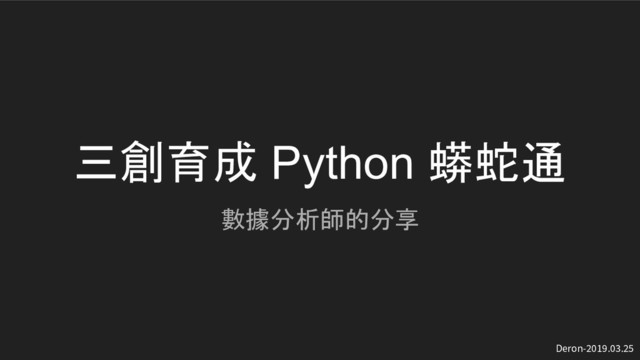 三創育成 Python 蟒蛇通 數據分析師的分享 Deron-2019.03.25