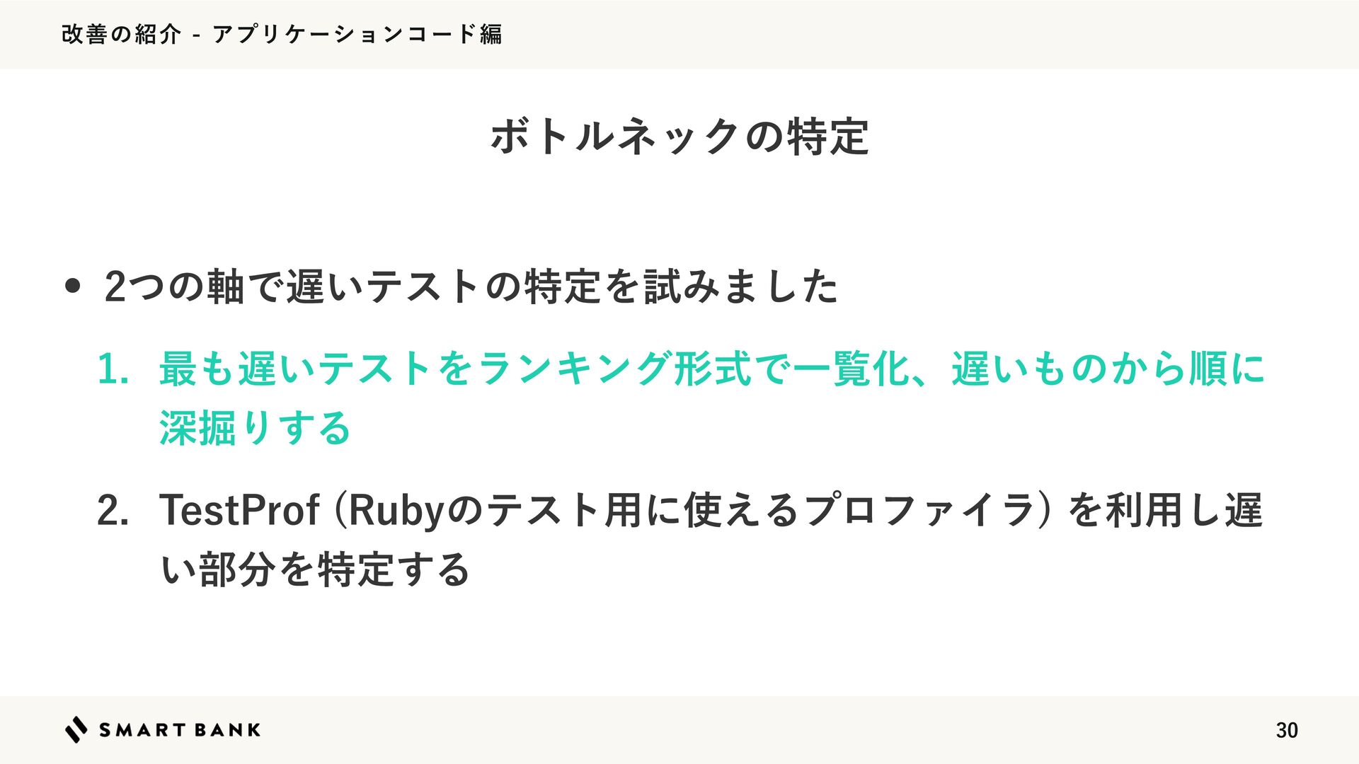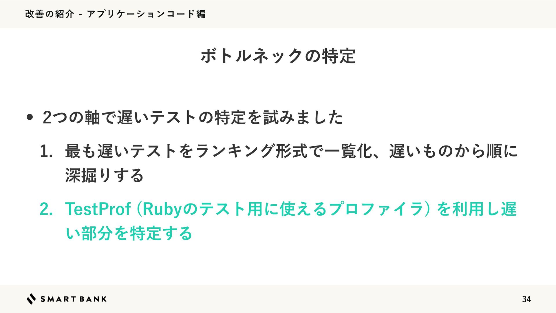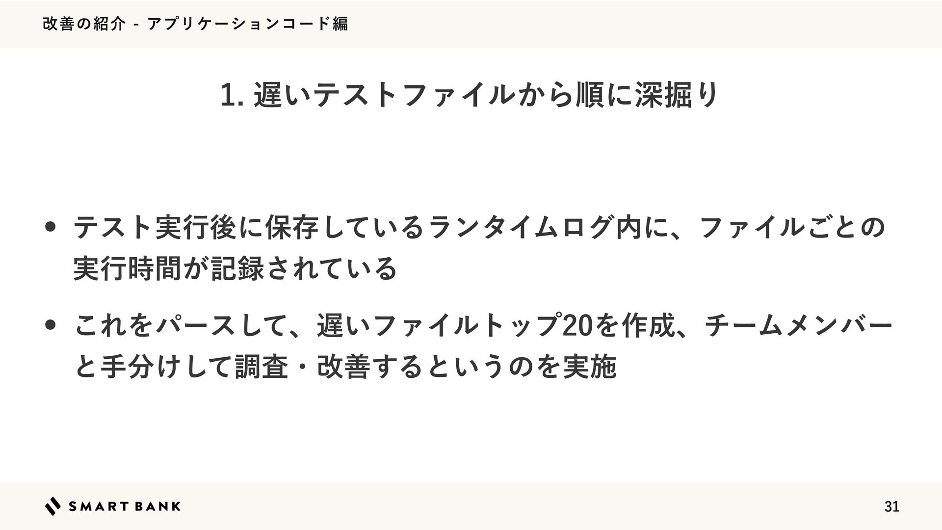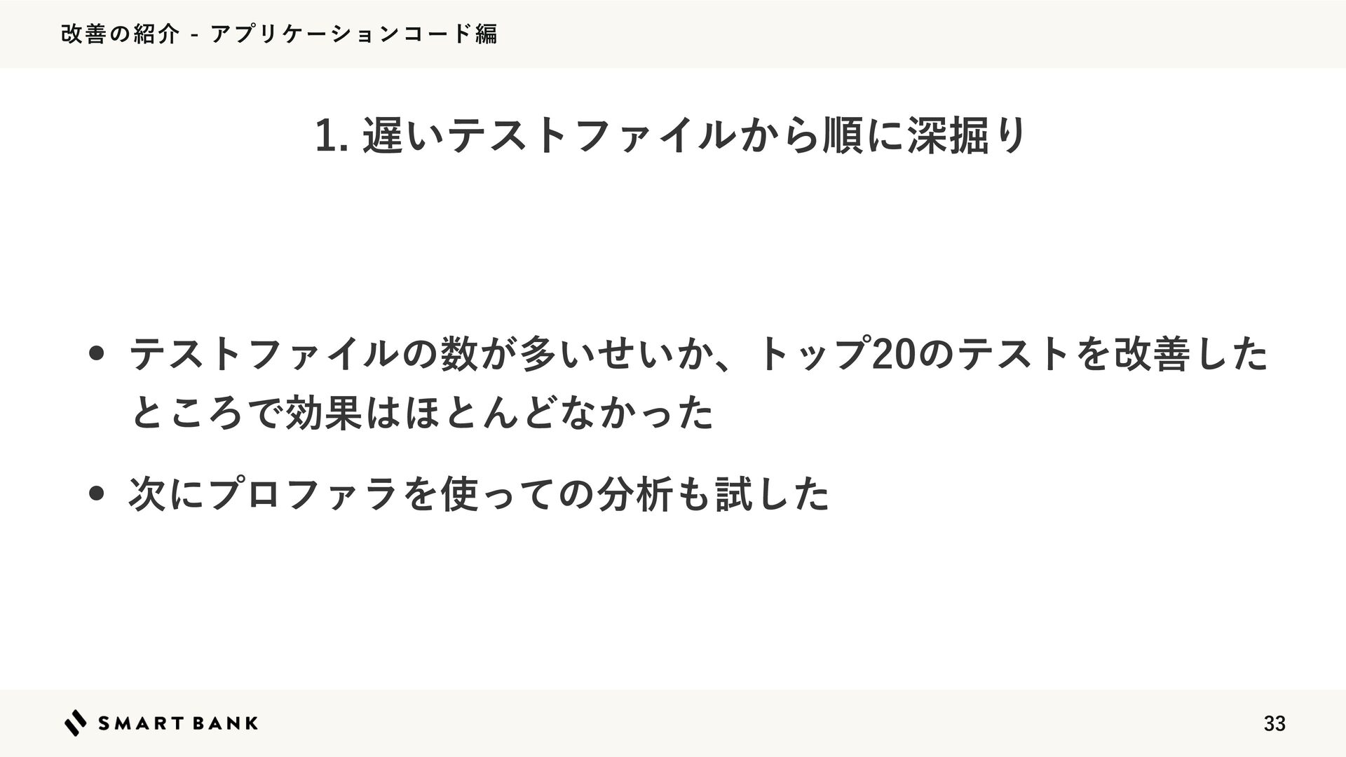 վળͷհΞϓϦέʔγϣϯίʔυฤ w ςετϑΝΠϧͷ͕ଟ͍͍͔ͤɺτοϓͷςετΛվળͨ͠ ͱ͜ΖͰޮՌ΄ͱΜͲͳ͔ͬͨ w ࣍ʹϓϩϑΝϥΛͬͯͷੳࢼͨ͠ ͍ςετϑΝΠϧ͔Βॱʹਂ۷Γ