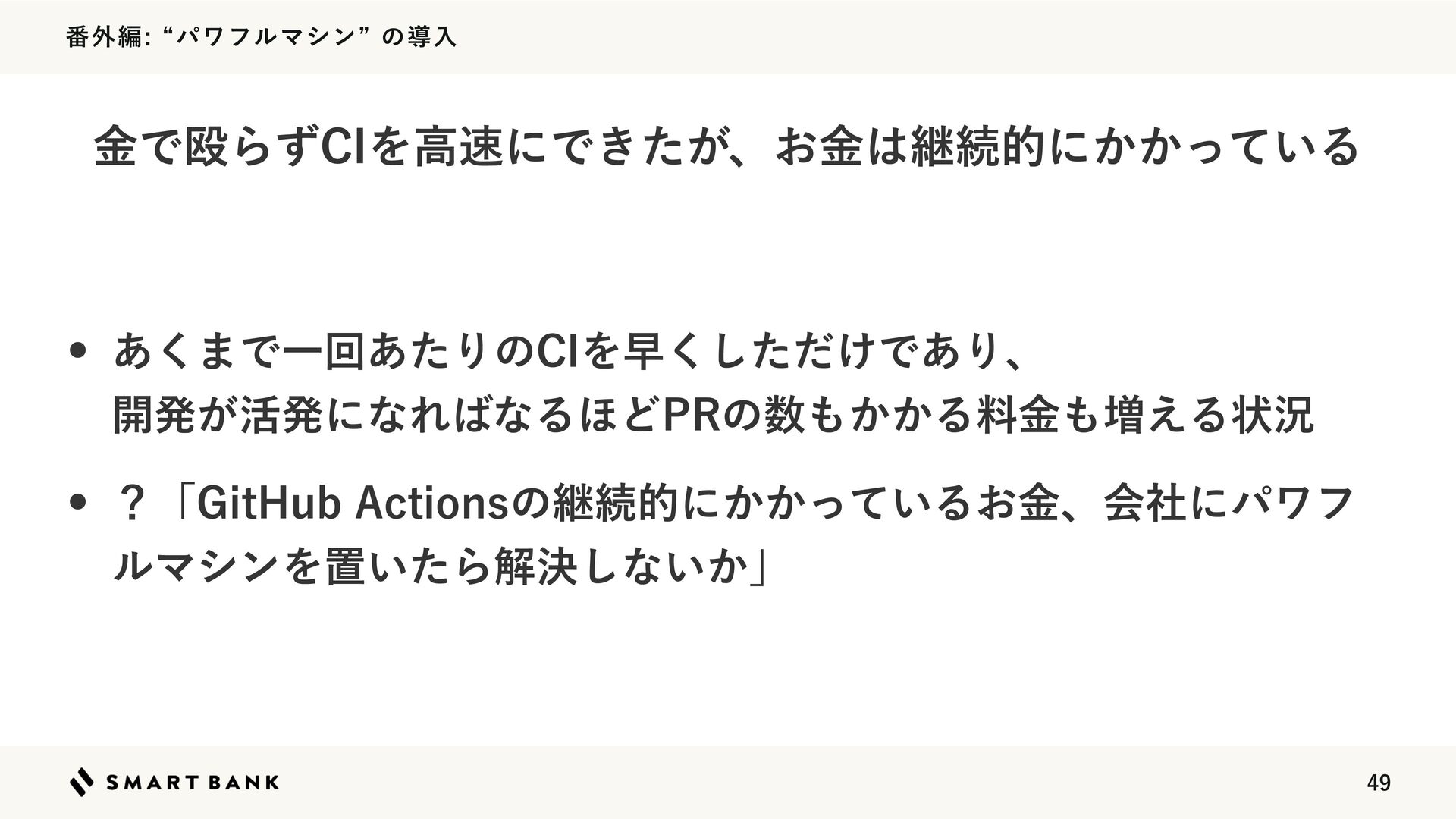 ൪֎ฤlύϫϑϧϚγϯzͷಋೖ w ૿͑ଓ͚͍ͯͨ (JU)VC"DUJPOTͷί ετ͕ٸܹʹݮ w ςετͷ͕૿͑ͯ ֹ͍ۚΛҡ࣋Ͱ͖ͯ ͍Δ