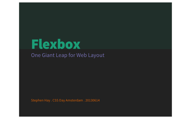My presentation for CSS Day 2013. Browser compatibility slide has been omitted; please check caniuse.com for Flexbox compatibility.