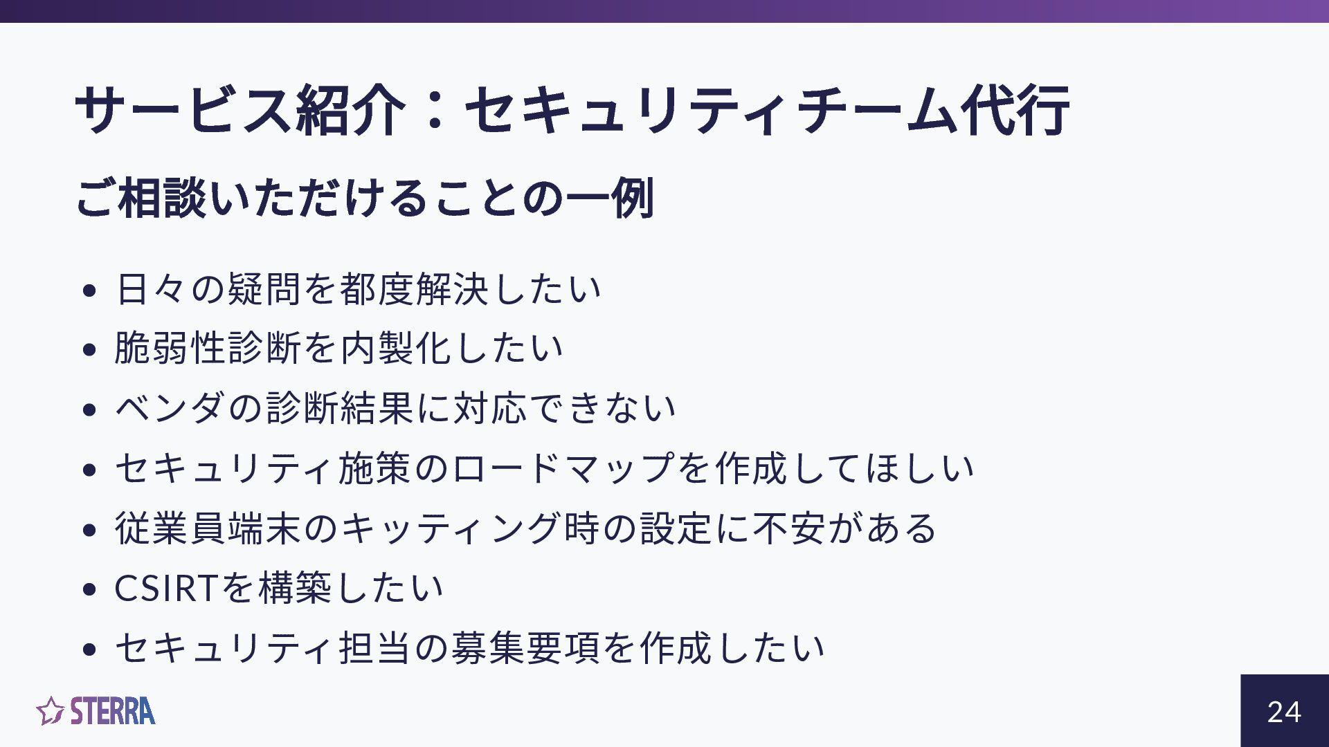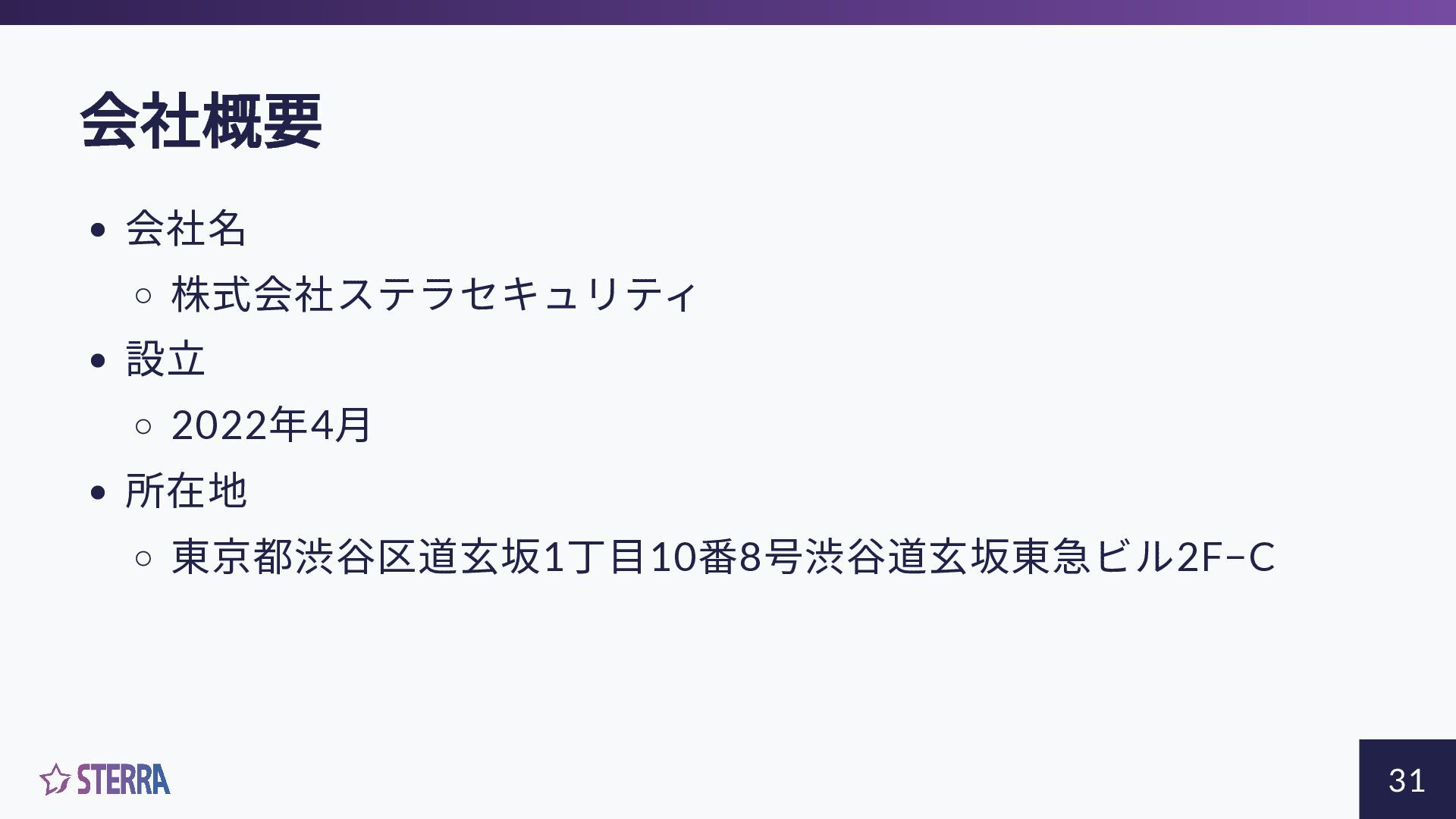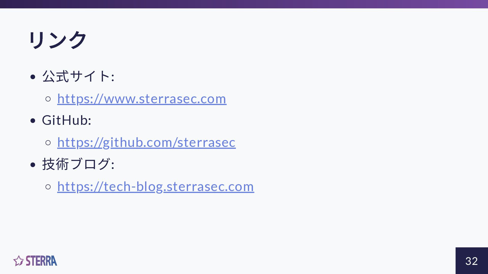 - 公式サイト: - https://www.sterrasec.com - GitHub: - https://github.com/sterrasec - 技術ブログ: - https://tech-blog.sterrasec.com