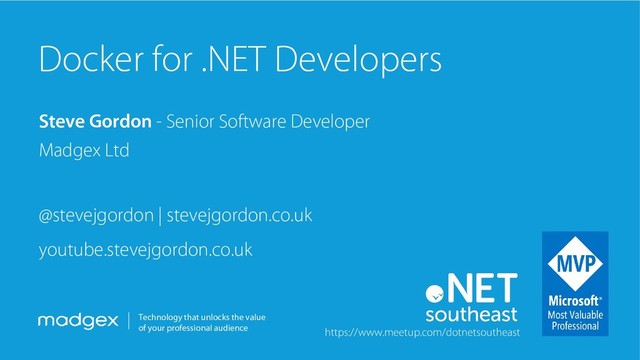 for .NET Developers Steve Gordon - Senior Software Developer Madgex Ltd @stevejgordon | stevejgordon.co.uk youtube.stevejgordon.co.uk https://www.meetup.com/dotnetsoutheast
