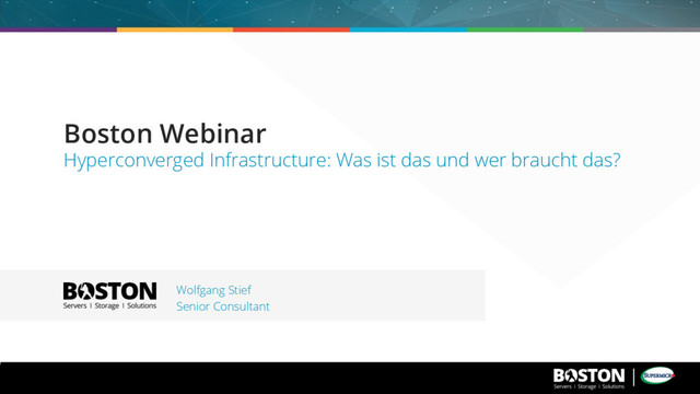 Hyperconverged Infrastructure? § Einsatz- und Anwendungsmöglichkeiten von HCI § Vor- und Nachteile von HCI § Was meint der Markt? § HCI-Lösungen aus dem Boston Portfolio § Atlantis Hyperscale § teutoStack § Boston vScaler § EMC VXRAIL Agenda