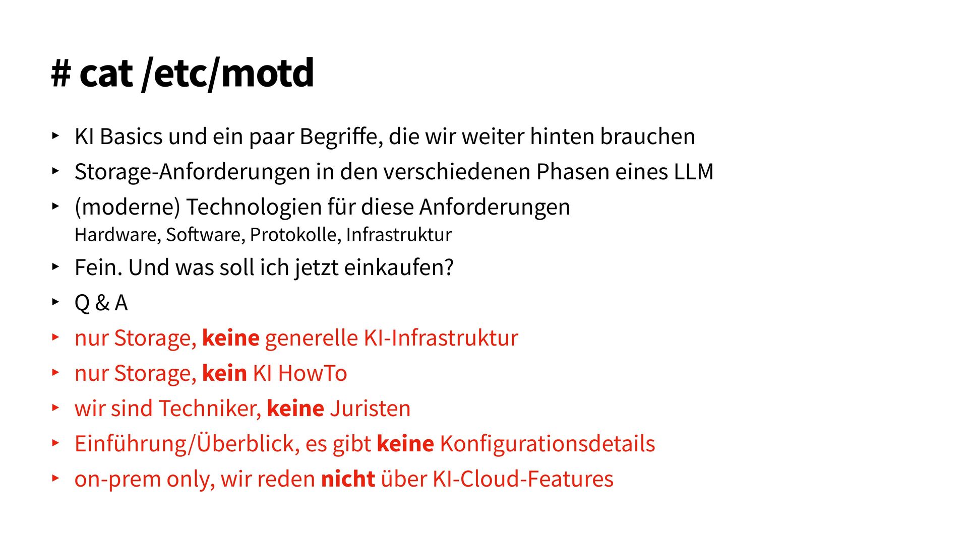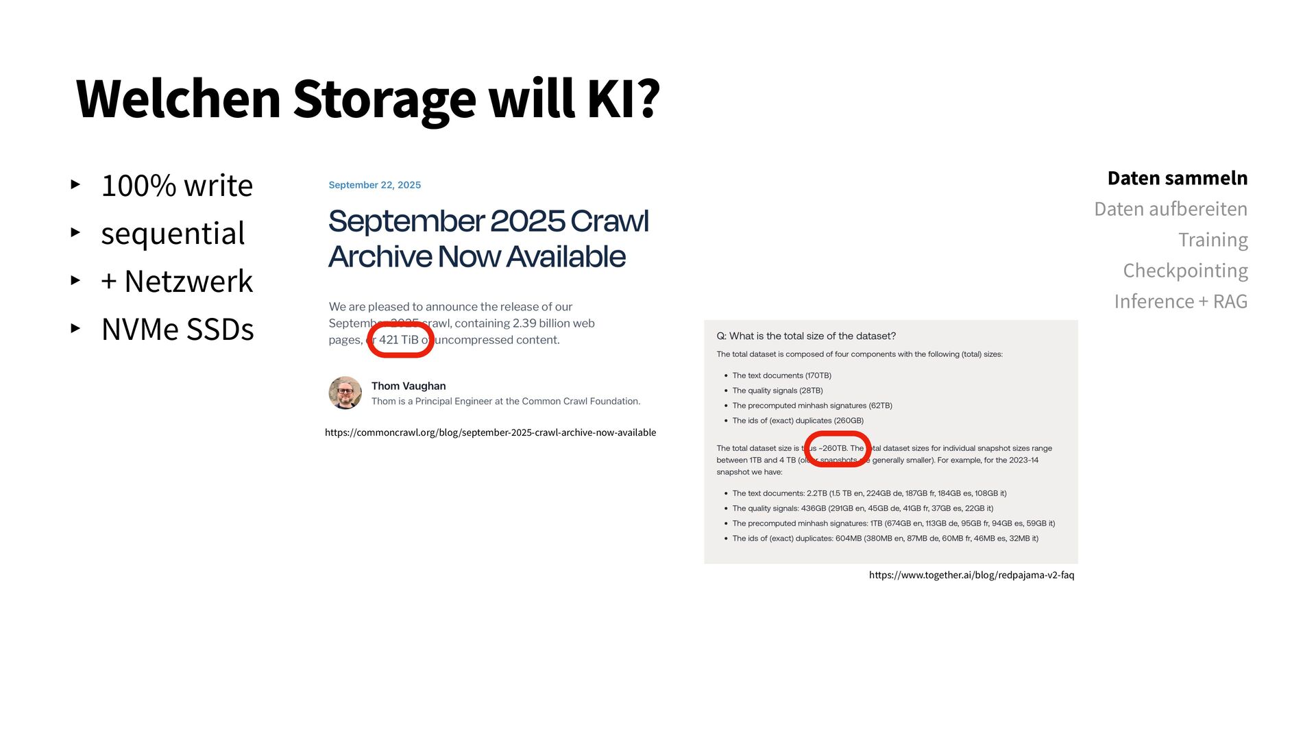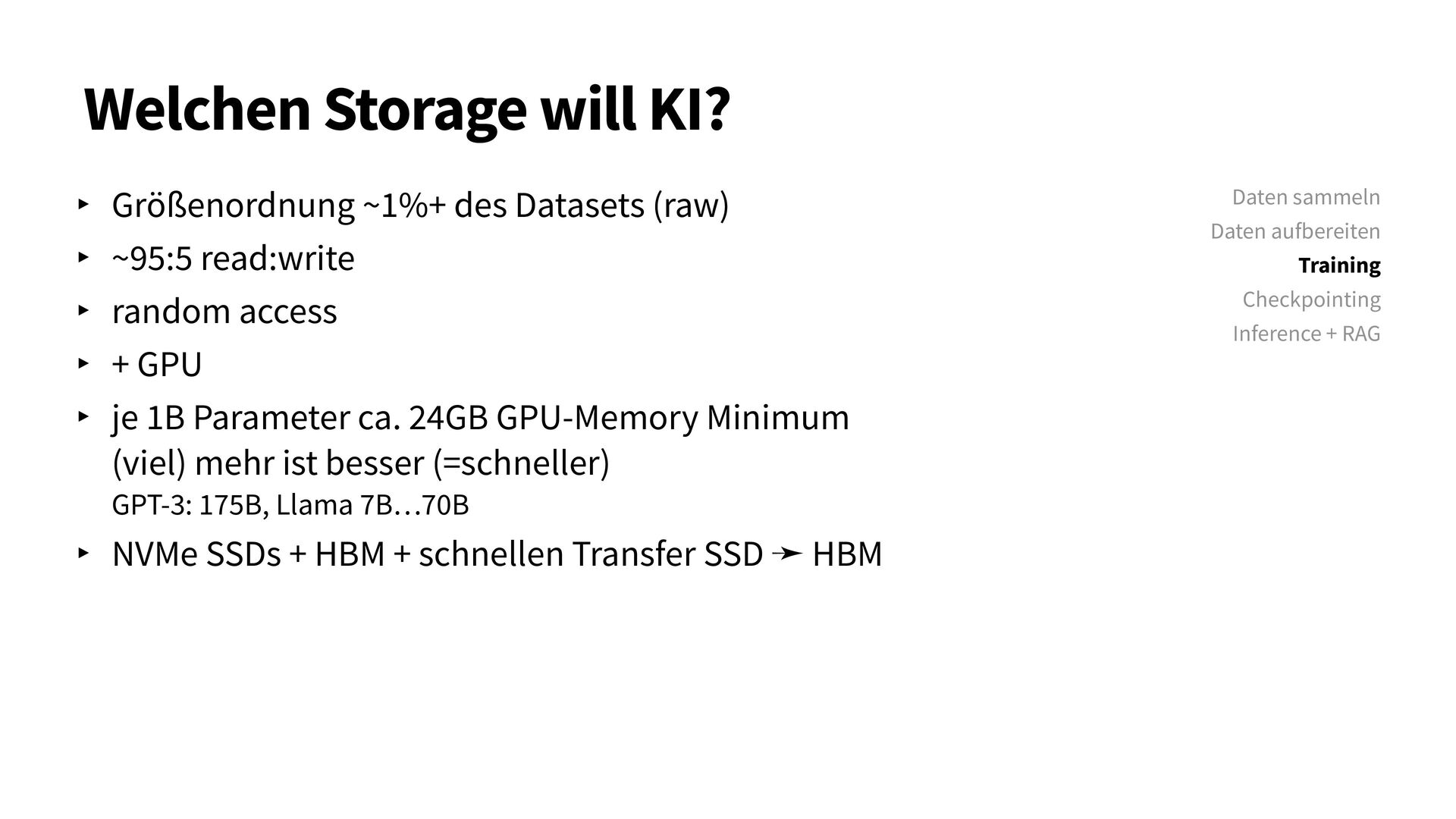 Im Vortrag beleuchten Wolfgang und Kerstin unter anderem spezifische Anforderungen in den Phasen Training und Inferenz, erklären, warum herkömmliche Storage-Lösungen scheitern (müssen), und zeigen sinnvolle Ansätze für den Betrieb einer optimalen Infrastruktur für KI-Workloads auf.