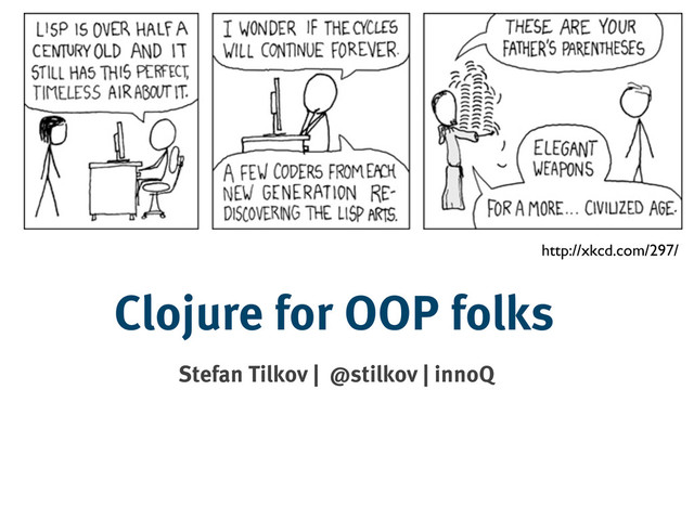 Your background is in OOP languages and you have become intrigued by Clojure. You know that things are different, and that continuing to design your programs in the same way you did in the past is likely going to cause problems. In this session, we will take a look at concepts that are likely to be familiar to you, such as encapsulation, type and class hierarchies, modularization, and domain modeling, and show what the analogies in idiomatic Clojure are. We will also take a look at some of the additional tools Clojure offers that go way beyond what you are used to — hopefully setting you off on your way to become a great Clojure programmer.