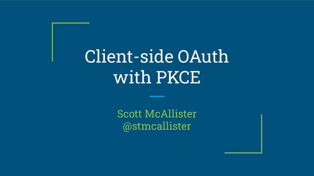 The OAuth standard has been around for a while, but traditionally it has required a back-end server to hold a client secret, well, secret. Managing secrets can be a very hard problem to solve. Until now! By supporting Proof Key for Code Exchange, or PKCE, OAuth flows can now be accomplished entirely in the client--and still be secure. In this talk we begin the standard three-legged flow and then introduce PKCE. By the time you leave, you will understand how to implement it in your client applications and the benefits for doing so.