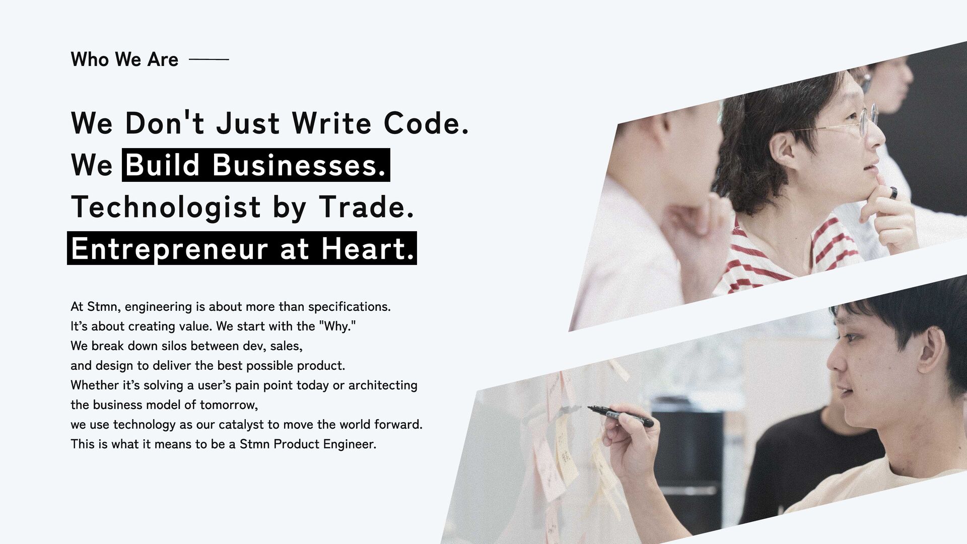 At Stmn, Inc., we don't just write code; we build businesses. We define our engineers as "Product Engineers"—builders who combine technical expertise with an entrepreneurial mindset to solve real user problems.