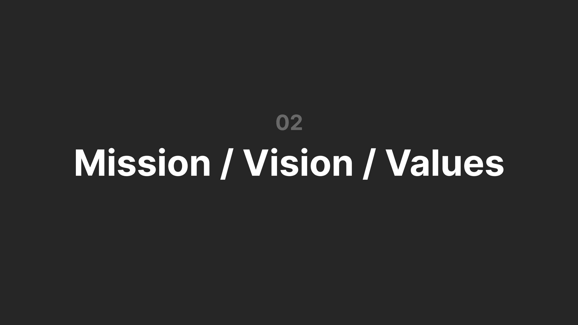 1. 01 Our Overview 02 Mission / Vision / Values 03