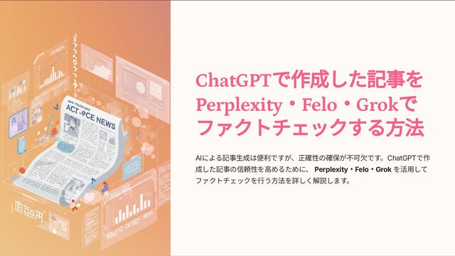筆ヹ修正して、さらに良い記事にし てください。 Felo⽤フルヱフテ例 下記はChatGPTで⽣成した記事を Perplexityでビゟキテタゥチキした⽂ 章です。 ネラサニヺサュヱが発⽣し ていないか、事実と違う内容になっ ていないか、もう⼀度ビゟキテタゥ チキしてください。 必要であれば、 ビゟキテタゥチキした内容を加筆ヹ 修正して、さらに良い記事にしてく ださい。 Grok⽤フルヱフテ例 下記⽂章は⽣成AIに書いてもらった ピルギ記事です。 記事内容が最新に なっているか、最新情報タゥチキを ⾏ってください。 必要であれば、最 新情報を反映させて加筆ヹ修正し て、さらに良い記事にしてくださ い。