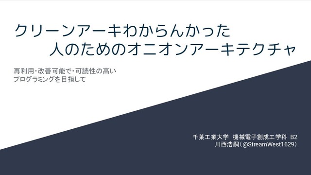 LT会の登壇資料です. Zenn: https://zenn.dev/streamwest1629/articles/no-clean_hello-onion-architecture (記事追加したい願望が強いのでZennフォローしてくれるとありがたい)