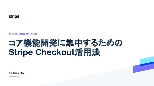 コア機能開発に集中するための Stripe Checkout活用法 JP_Stripes Deep Dive Vol.12 @hidetaka_dev Updated Jan