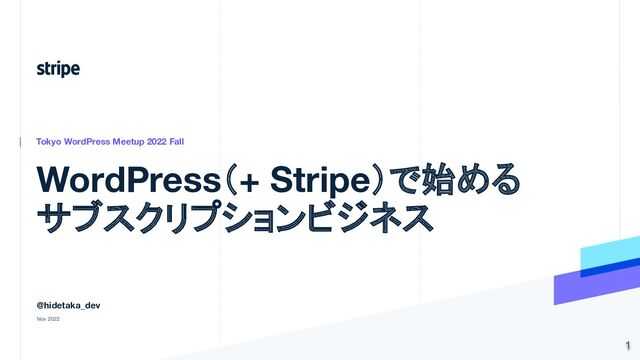WordPress(+ Stripe)で始める サブスクリプションビジネス Tokyo WordPress Meetup 2022 Fall @hidetaka_dev Nov