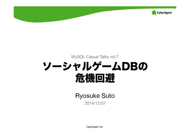 CyberAgent, Inc. Ryosuke Suto ιʔγϟϧήʔϜ%#ͷ ةػճආ MySQL Casual
