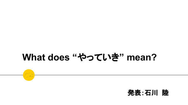 やっていき あなたはやっていきという言葉を聞いた時、どんなイ メージが浮かぶでしょうか? 言われがちな文脈の例: 「あの人はやっていきに溢れてる」 「君からはやっていきを感じる!」 「やっていきの精神を持っていこう」 「やっていきのある人がいっぱいいた」