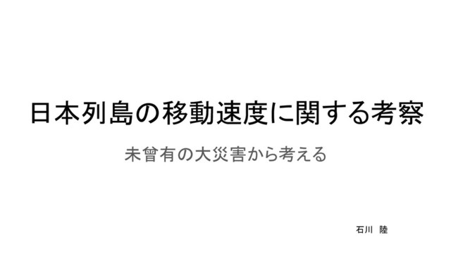 日本列島の移動速度に関する考察 未曾有の大災害から考える 石川 陸