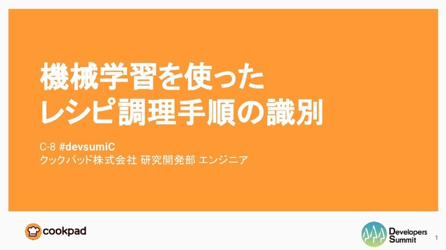 機械学習を使った レシピ調理手順の識別 C-8 #devsumiC クックパッド株式会社 研究開発部 エンジニア 1
