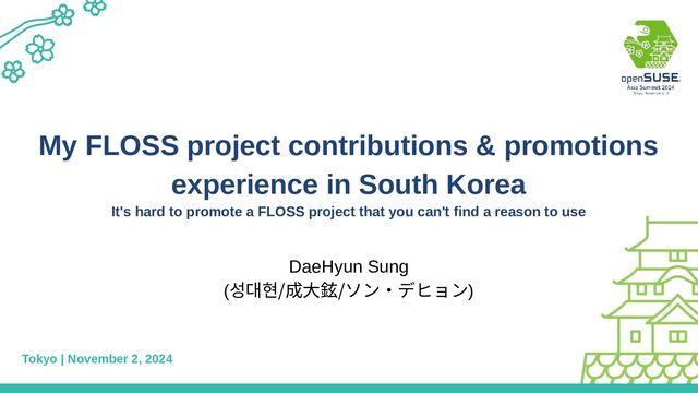 Title: My FLOSS project contributions and promotions experience in South Korea