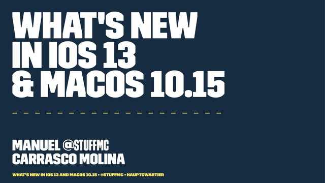 – – – – – – – – – – – – – – – – – Manuel @StuFFmc Carrasco Molina What's new in iOS 13 and macOS 10.15 • @stuffmc • HauptCWartier