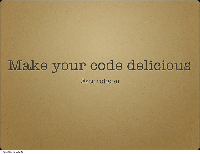 what you’re doing. Gives understanding as to what you’re doing. Helps others comprehend what you’ve done. Making your code delicious Thursday, 18 July 13