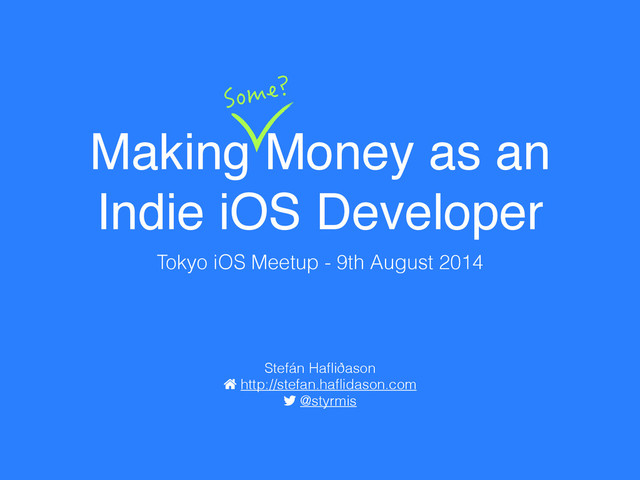 Is it possible to make a living as an indie iOS developer? Recently there has been a lot of discussion on blogs and in podcasts about the feasibility of making a living from making, selling and supporting your own iOS apps. In this presentation I highlight some points made on the topic recently and gather some tips that may improve a developer's chances of making it as an indie dev.