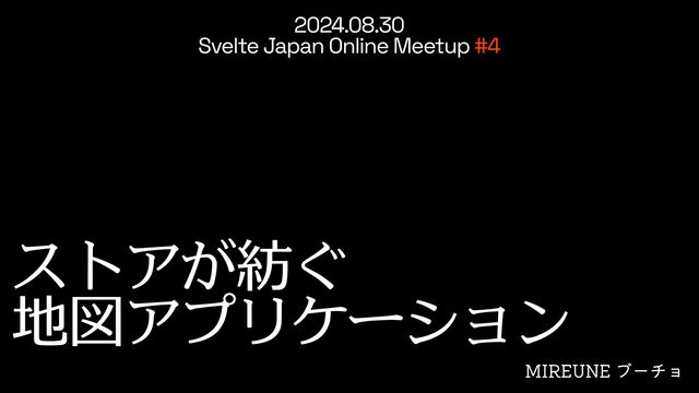 ストアが紡ぐ 地図アプリケーション 2024.08.30 Svelte Japan Online Meetup #4 MIREUNE ブーチョ