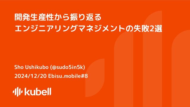 Sho Ushikubo (@sudo5in5k) 2024/12/20 Ebisu.mobile#8 開発生産性から振り返る エンジニアリングマネジメントの失敗2選