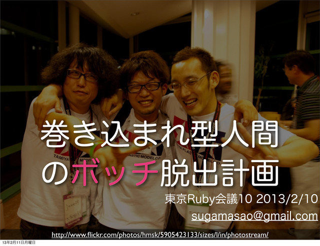 東京Ruby会議10での資料です。 2日目に予定していた発表が延長されて、3日目になったものです。 資料自体は2日目のものより少し手直しをしています。